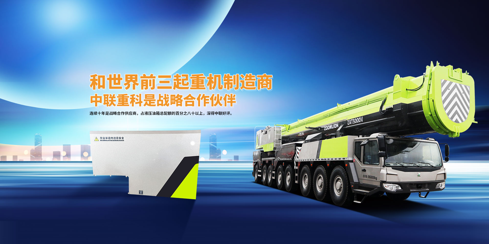公司連續(xù)三年在長沙中聯(lián)重科環(huán)境產業(yè)有限公司是優(yōu)秀供應商,在中聯(lián)汽車吊公司也是優(yōu)秀供應商,并且連續(xù)十年是戰(zhàn)略合作供應商,占液壓油箱總配額的百分之八十以上,深得中聯(lián)的好評。
